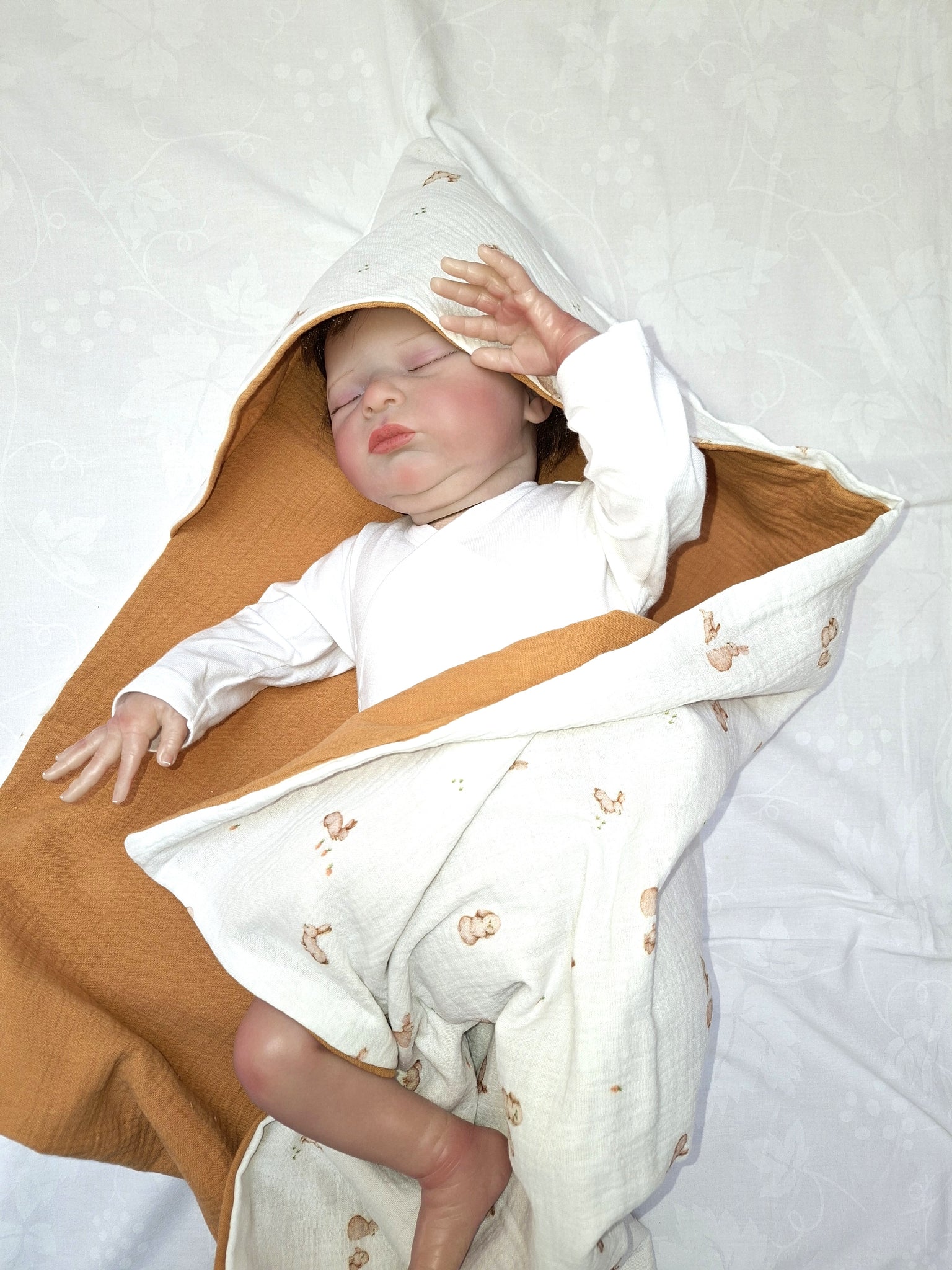 Badcape van zachte en huidvriendelijke hydrofiel konijntjes met een karamel voering.