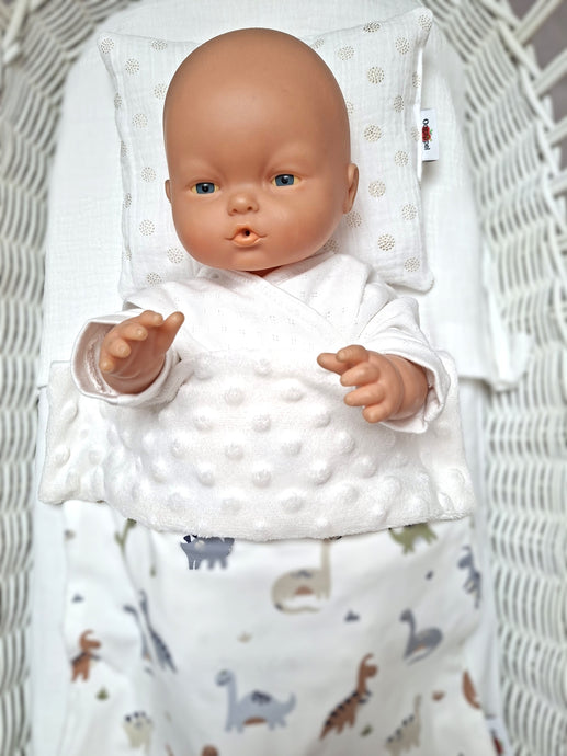 Met de poppendeken-met-kussentje set van Oogappel creëer je een knusse slaapwereld voor elke pop.