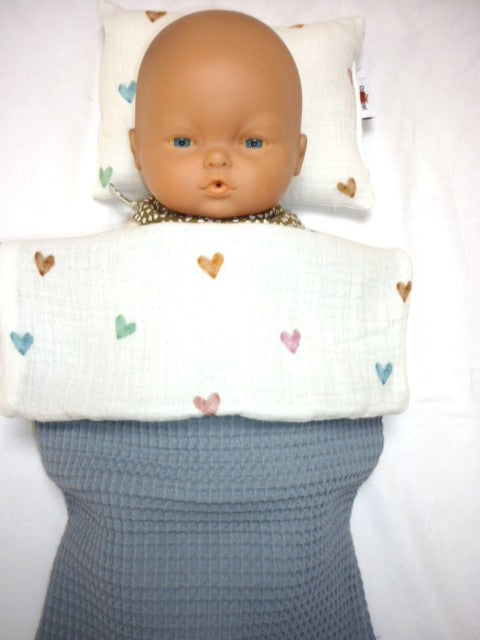 Maak je poppenmoeder of vader blij met onze schattige dekentjes met kussentje en omslagdoeken voor de pop of de favoriete knuffel.