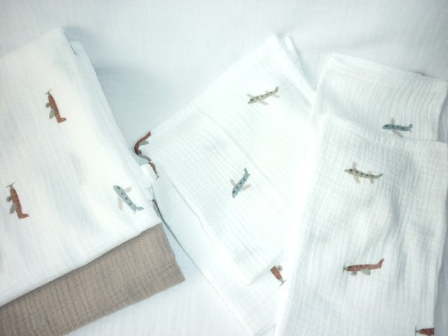 Handige hydrofiel 9-Pack bestaande uit 2 stuks hydrofiele doeken, 2 washandjes en 2 monddoekjes.
